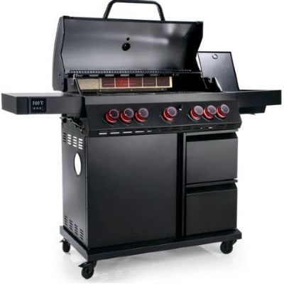 Cool Black MaxX 5.2 är utrustad med unika utdragbara förvaringslådor, inklusive en inbyggd kylbox som håller drycker och ingredienser svala. Inuti skåpet finns en dedikerad plats för gasolflaskan. Grillen har även en inbyggd instickstermometer för exakt temperaturkontroll.